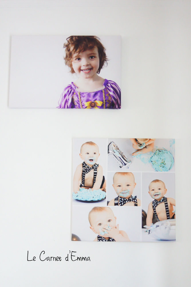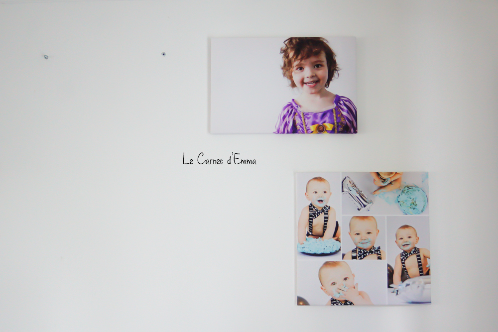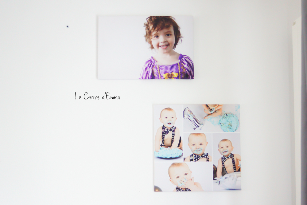 Depuis notre déménagement, je dis à mon chéri qu’il faut qu’on développe des photos pour remplir les murs. Alors quand Smarphoto m’a proposé de tester leur site, c’était l’occasion de prendre des toiles et des tirages pour notre chambre. Ce que j’avais en tête c’était de mettre les toiles dans les chambres des loulous mais lorsque je les ai vu je n’ai pas pu. Elles ont fini dans le salon pour que je puisse en profiter chaque jour.
