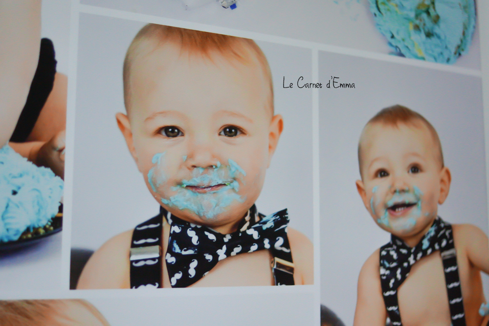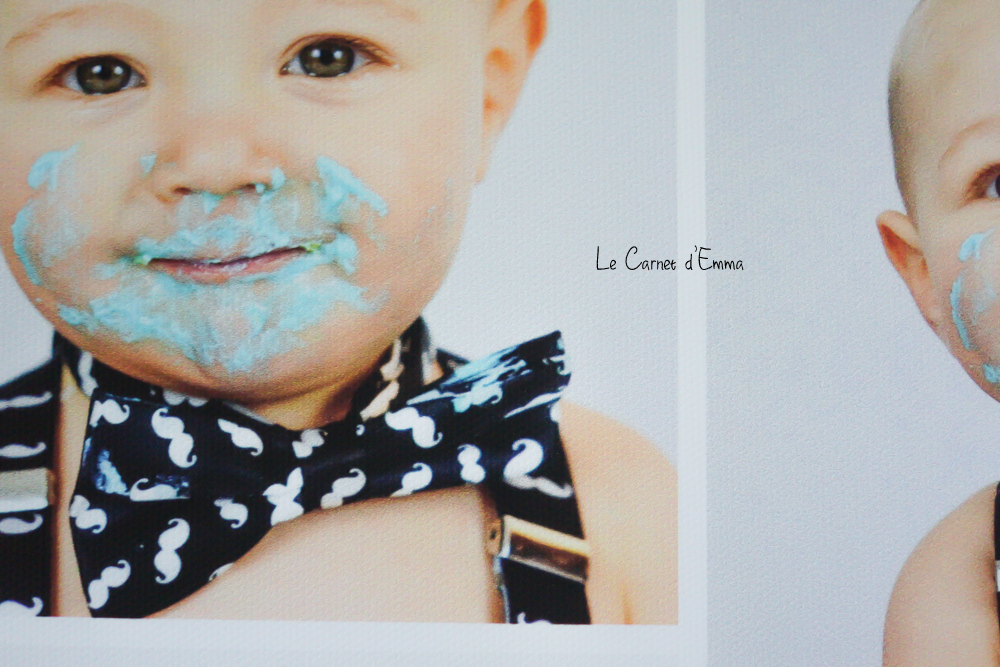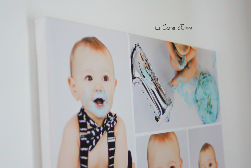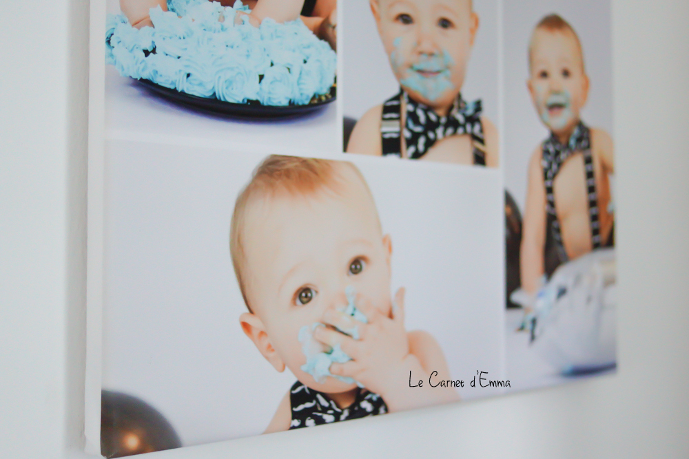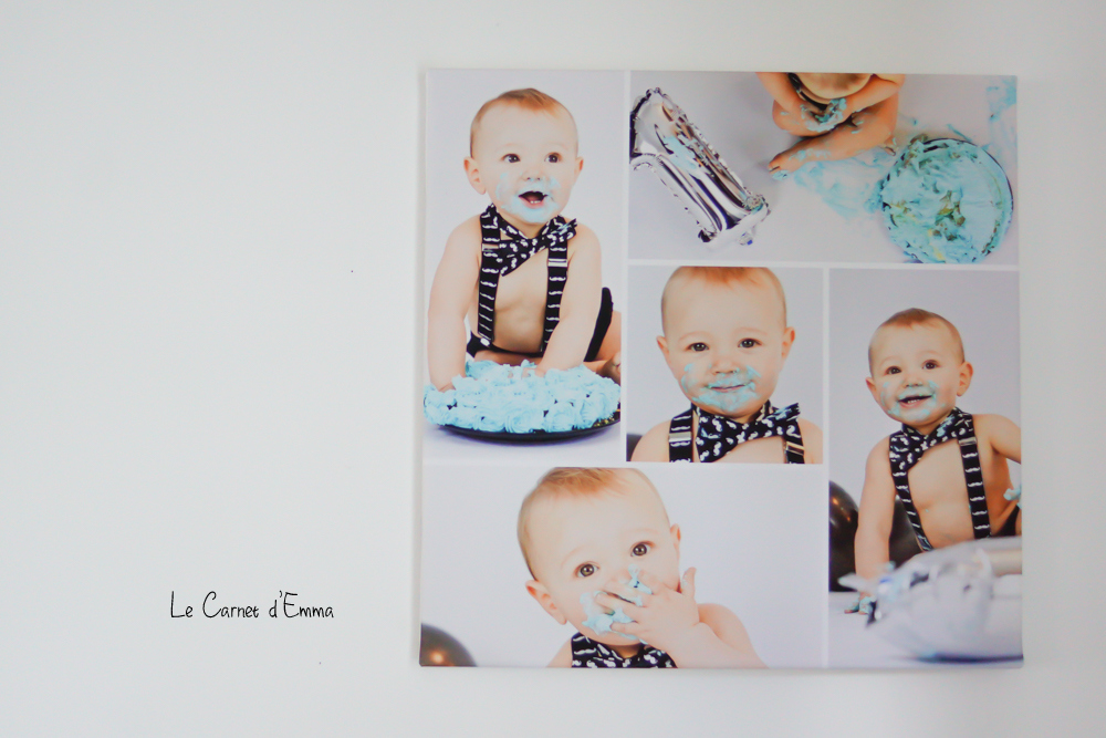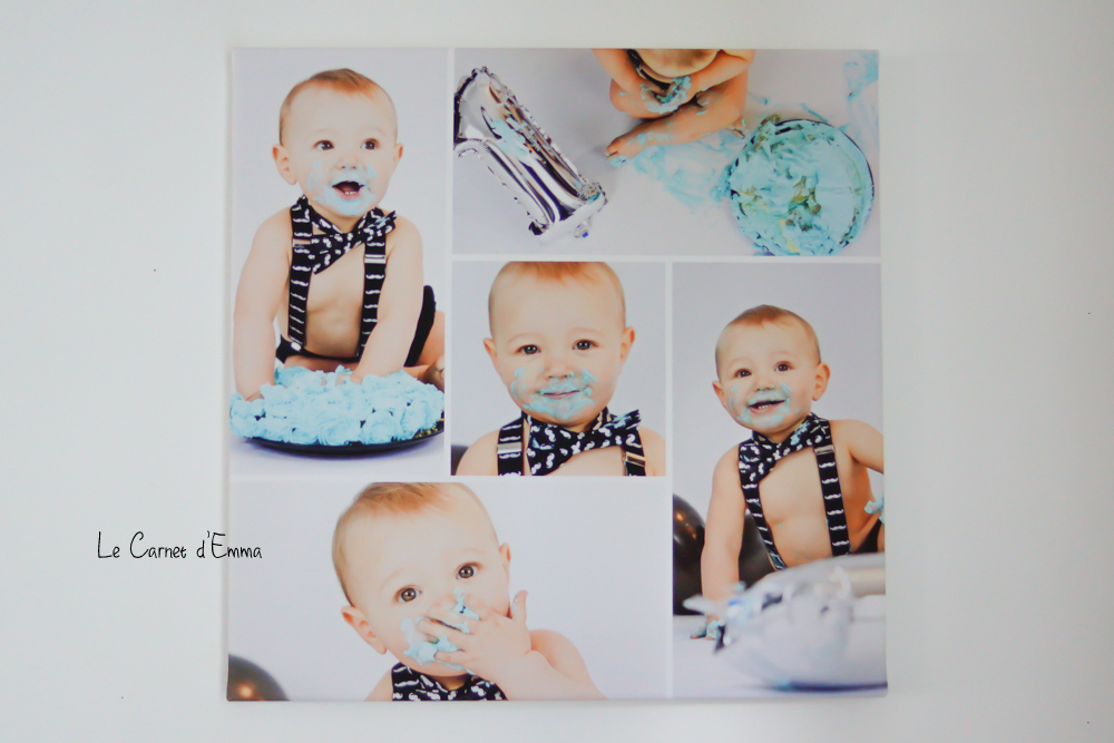 Pour ma première toile, j’ai voulu un pèle mêle des photos du cake smash que nous avions fait pour les 1 ans de Kris. Le résultat est exactement comme je le voulais. Il n’est pas trop chou mon bébé ?