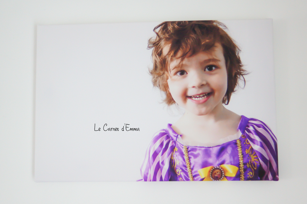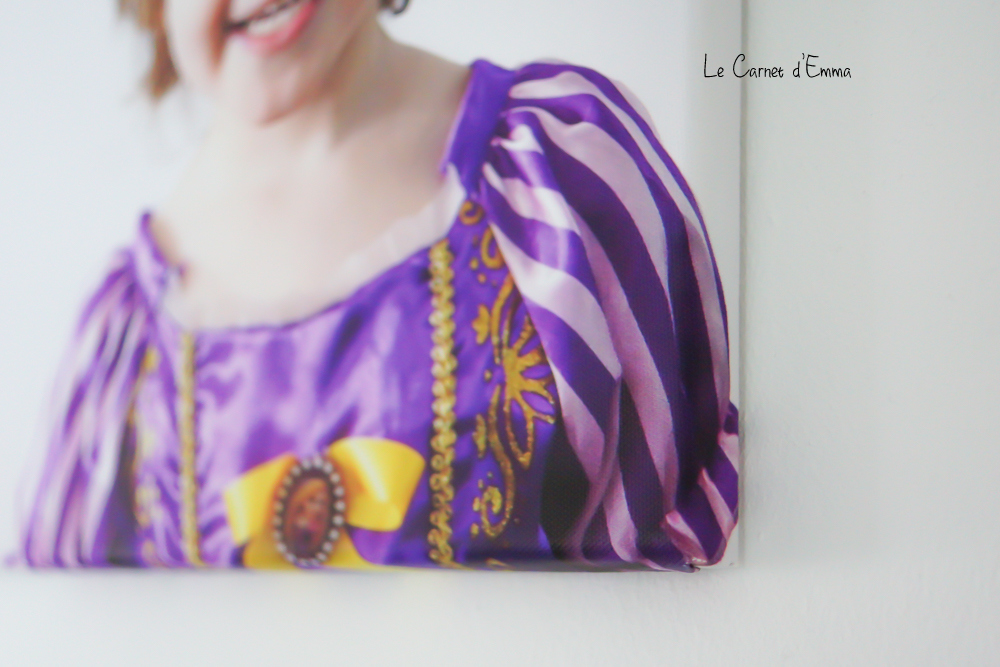 Et pour Kat je voulais à la base lui faire plaisir en mettant une photo d’elle en Princesse dans sa chambre. Mais finalement je trouve ma princesse tellement belle que je garde la toile pour moi. Chuuut je ne lui ai pas dit que c’était pour elle à la base. La différence par rapport à la toile de Kris c’est que sur celle ci la photo va aussi sur les bords et entoure toute la toile.