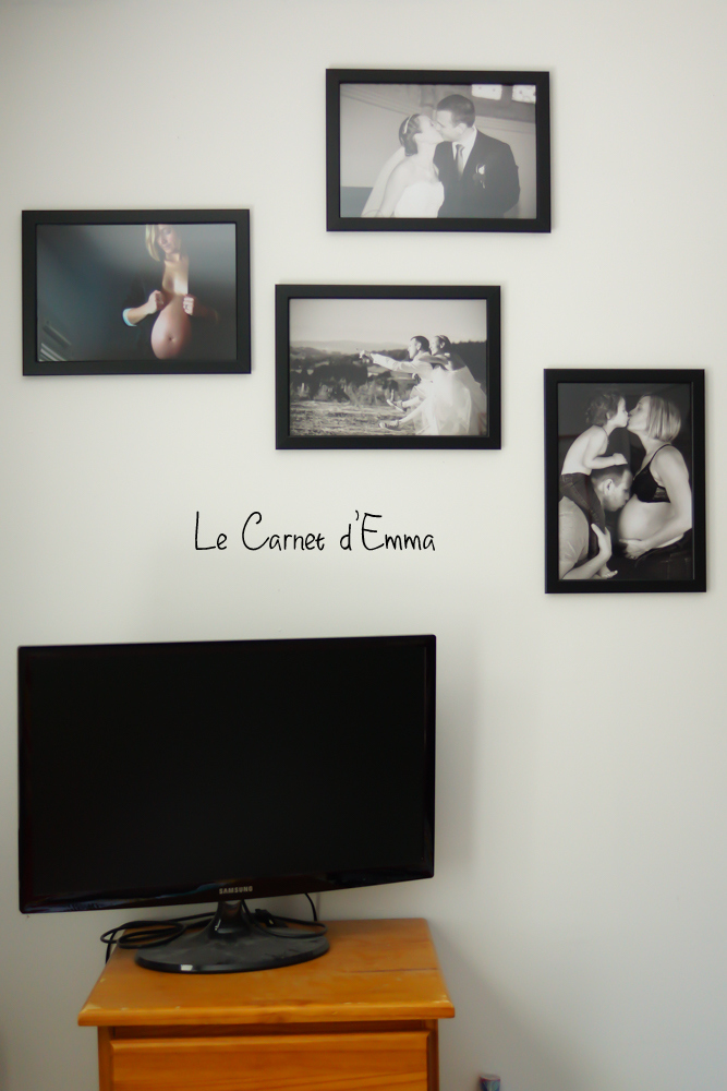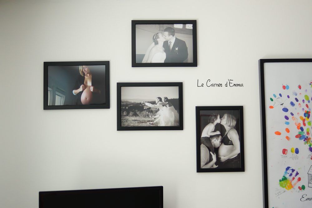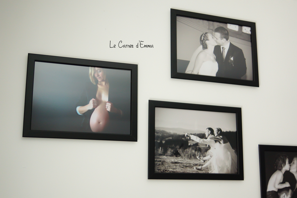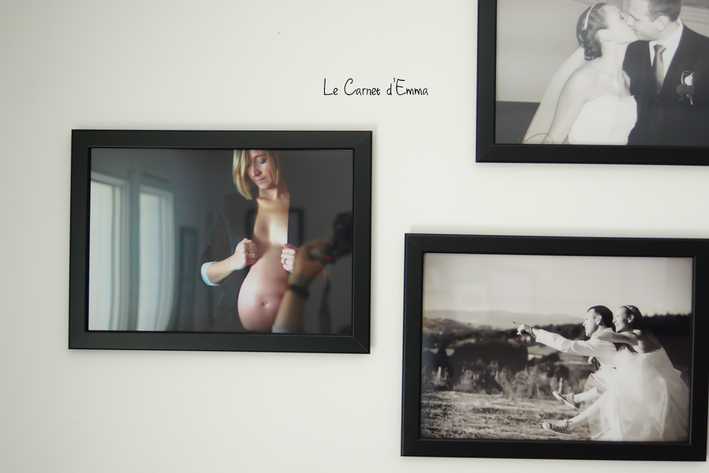 Et pour compléter ma commande, j’ai enfin développé des photos de ma deuxième grossesse et de notre mariage ! Oui oui il était temps de rajouter ces moments de notre vie. Bon maintenant il faudrait aussi que je rajoute des photos de Kris ^^ Le rendu est comme je voulais. Petit à petit notre mur prend les allures que je souhaitais.
