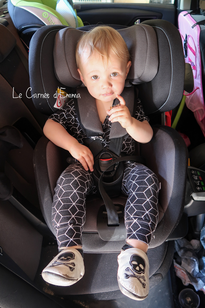 Pour conclure, j’adore ce siège auto au quotidien. Il est vrai que sur les longs trajets j’ai un peu plus de mal au vu du fait que la tête de Kris tombe mais on va bien trouver l’astuce qui nous convient.