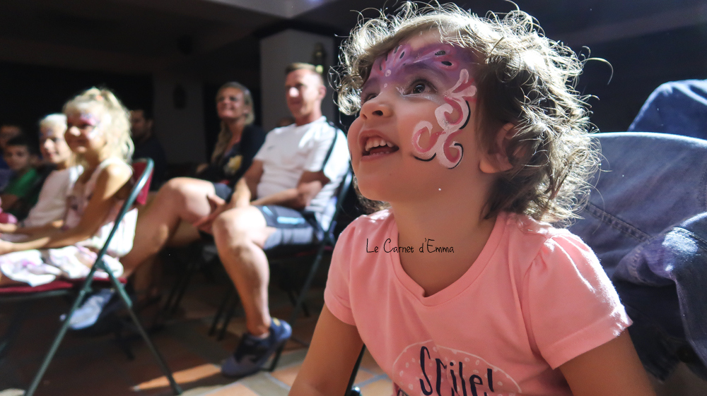 - Vous pourrez assister à un spectacle comique avec un ventriloque, mais aussi les enfants pourront se faire maquiller ainsi qu’avoir des sculptures de ballons. Il y a aussi une grande aire de jeux qui est top top !