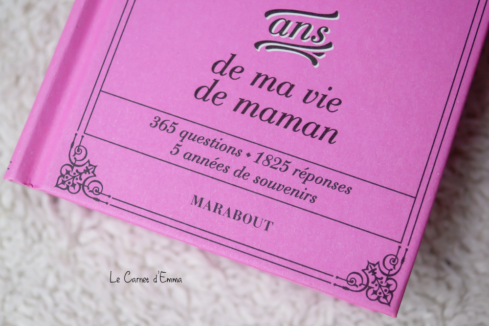 5 ans de ma vie de maman, c’est un journal à compléter chaque jour : 365 questions, 1825 réponses, 5 années de souvenirs ! L’idée est simple, chaque jour on répond à une question et ce pendant toute une année. Puis l’année suivante op on recommence avec les même questions. J’adore l’idée de pouvoir écrire sur notre vie de maman et chaque année voir ce que l’on avait répondu les années précédentes. Logiquement nos réponses vont changer en même temps que nos enfants grandissent. A 1 an ils ne font pas la même chose qu’à 6 ans. L’évolution sera fun et sympa à lire.