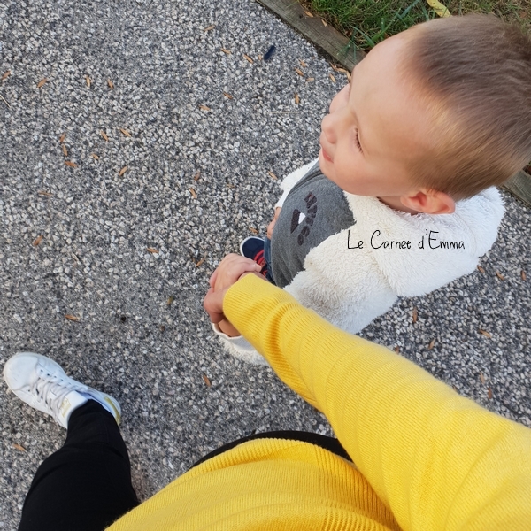 Aller chercher ma grande à l’école main dans la main avec mon bébé.