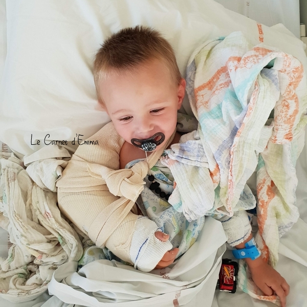 Etre aller faire une brocante et avoir trouvé ce qu’il me fallait pour réussir à habiller Kris avec son plâtre