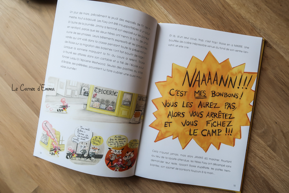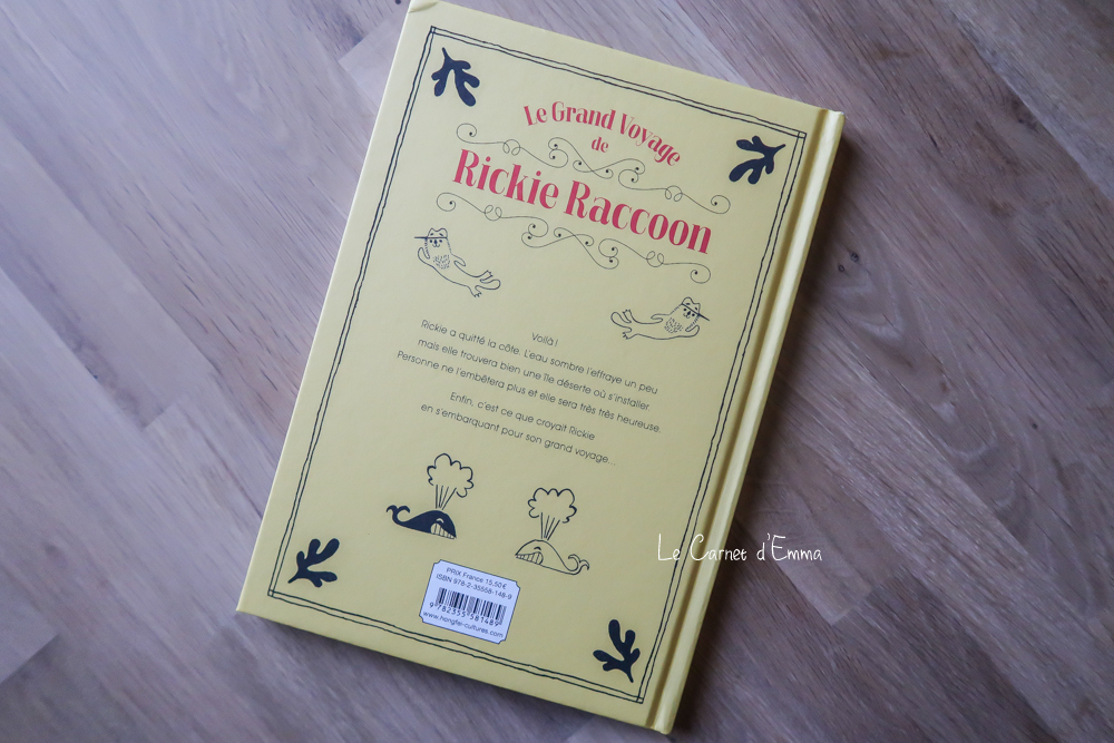 Un grand livre un peu plus long à lire. Rickie Raccoon est un petit raton laveur qui a été adopté et ne se sent pas à sa place dans sa ville. Après un excès de colère elle décide de partir loin, très loin pour se retrouver seule, ne plus être embêter et être heureuse. Au cours de son voyage elle va en apprendre énormément sur elle et comprendre où est sa place. Un livre bien écrit et joliment illustré qu’on apprécie lire.