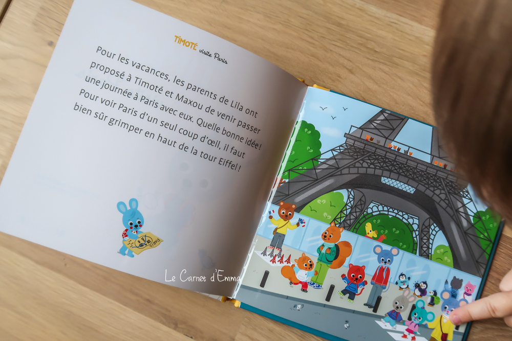 Si vous ne connaissez ce petit personnage foncez, vos enfants vont adorer Timoté. Ici il nous accompagne régulièrement dans différentes étapes (propreté, sommeil difficile …) Dans ce nouveau livre, Timoté part visiter Paris avec ses copains et ses parents. Au fil des pages on découvre les grands monuments de Paris et ses trésors. Idéal si vous habitez la capitale ou que vous avez prévu d’y aller en balade. On adore !