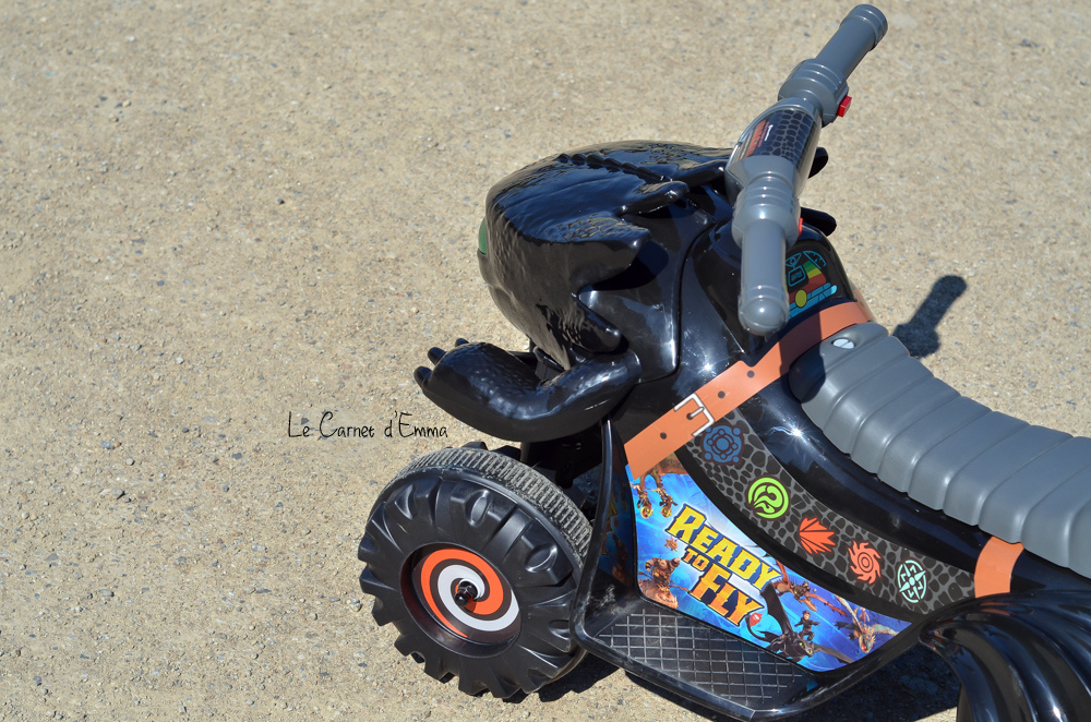 Un petit mec heureux c’est ce que vous allez voir au fil des « nombreuses » photos de cet article ! Kristian a été gaté par Rollplay pour son anniversaire. Et je les en remercie encore beaucoup. Il a reçu une de leur dernière nouveauté : le mini quad Dragon à l’effigie de Krokmou. Moi la fan de dessin animée, moi qui adore les 3 films Dragons et qui ai même pleuré à la fin du dernier, j’étais en fait surement la plus excitée des deux quand il a reçu les colis. Lui était à fond sur le deuxième colis : une moto rouge !