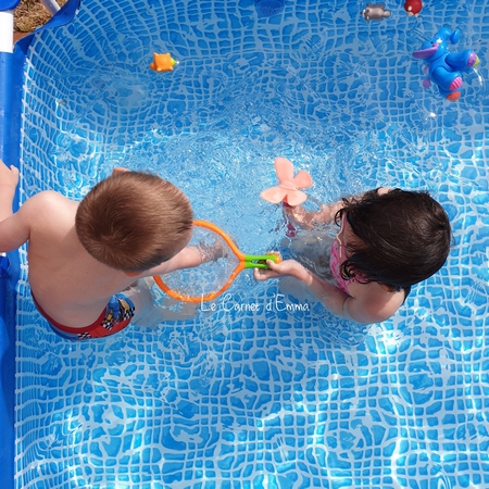 On a reçu notre piscine et les enfants savourent le bonheur de povuoir aller piquer une tête avec la canicule.