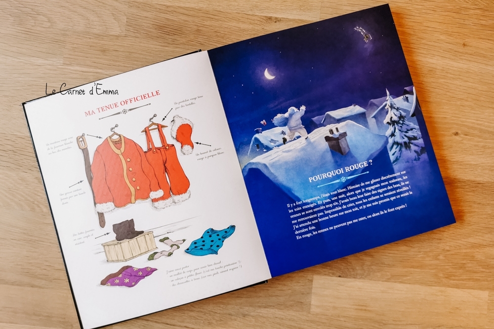 Tu veux tout savoir sur les secrets du Père Noël ? Son origine, le prénom et le caractère de tous ses rennes, comment est faite sa maison, la tournée … ? TOUT dans ce livre on apprend TOUT sur le Père Noël. Mais ce n’est pas un livre à « l’ancienne », non c’est les secrets du Père Noël d’aujourd’hui. Et ça j’adore. Il est assez épais, un vrai gros livre comme les vieux grimoires. J’ai autant aimé que les enfants en apprendre plus sur le vieux bonhomme habillé en rouge.