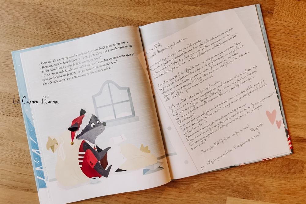 Dans ce joli livre, le Père Noël a perdu une lettre ultra importante. Alors tous les lutins sont à sa recherche. Au cours de cette recherche, ils vont lire plusieurs lettres qu’ils trouvent essentielles également. Au fil de ce livre, les enfants vont découvrir que pour le Père Noël chaque lettre qu’ils reçoient est extrèmement importante et mérite toute son attention. Un joli livre qui aborde au fil des lettres différents sujets (déménagement, pollution, l’arrivée d’un petit frère ou petite soeur, séparation des parents …)