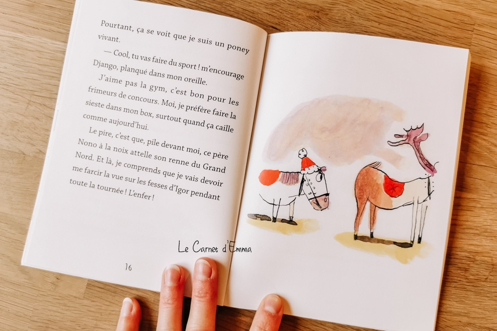 Celui-ci est super fun et idéal pour les plus grands qui savent déjà lire. Un vrai livre avec une histoire un peu plus longue que d’ordinaire. L’histoire ? On suit Tarzan, un poney de club qui est pas très aimable et plutôt grognon. Il va se retrouver le jour de Noël à devoir remplacer des rennes du Père Noël et faire la tournée des cadeaux. Mais tout ne se passe pas comme prévu. Un livre vraiment rigolo à lire tout en véhiculait un joli message. On aime beaucoup.