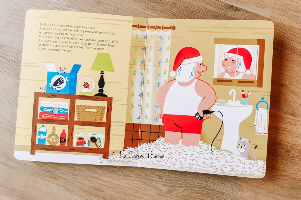 On le sait tous, le Père Noël à une très longue barbe. Un peu trop longue d’ailleurs, qui l’enquiquine chaque jour un peu plus. Alors pour Noël il demande une tondeuse et op fini la barbe. Mais très vite il va se rendre compte que finalement elle est cool sa barbe. Un petit livre cartonné bien rigolo avec une facette du Père Noël qu’on n’a pas l’habitude de lire. Kris l’adore et me la réclame très très souvent.